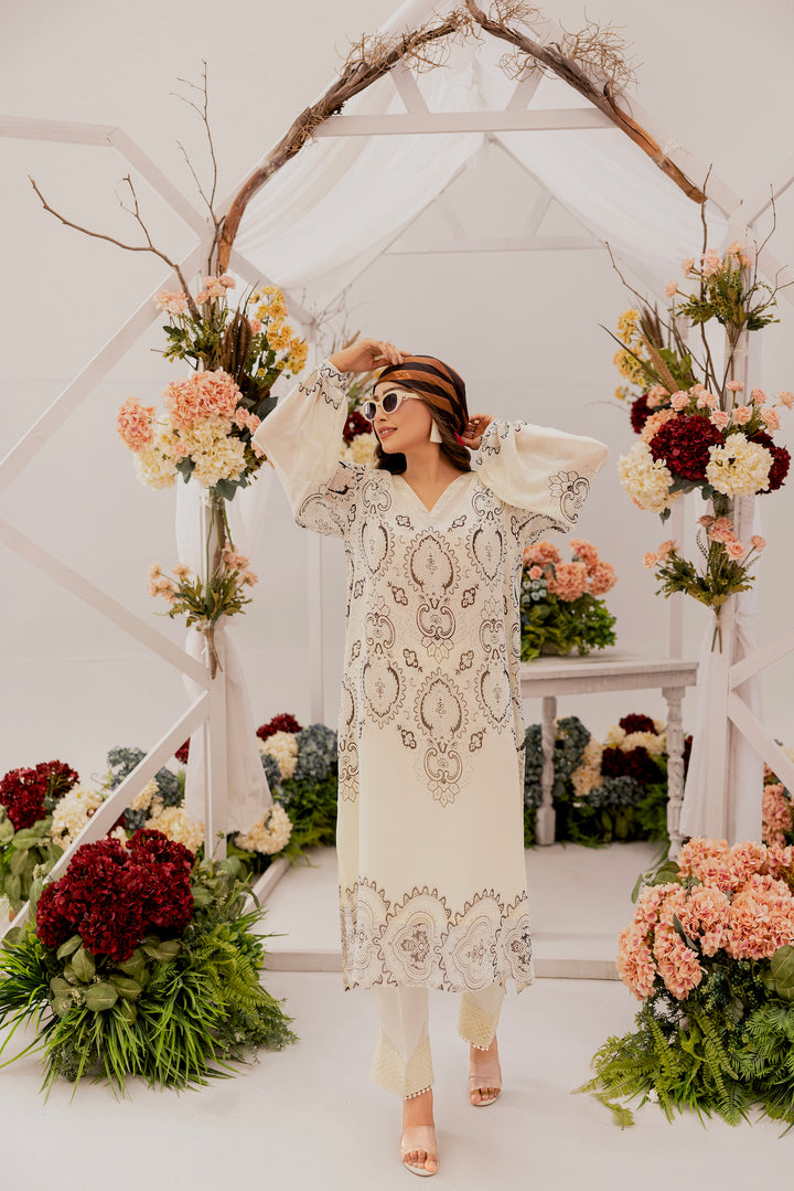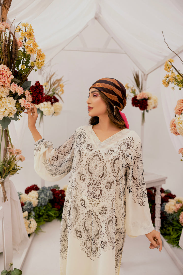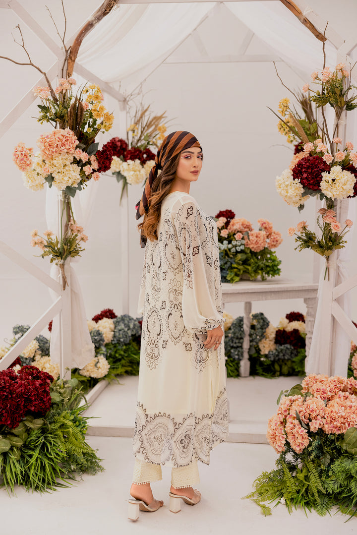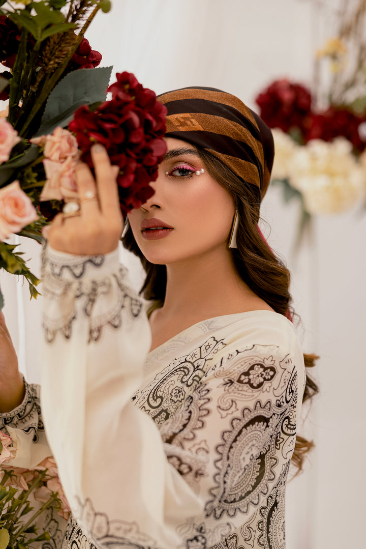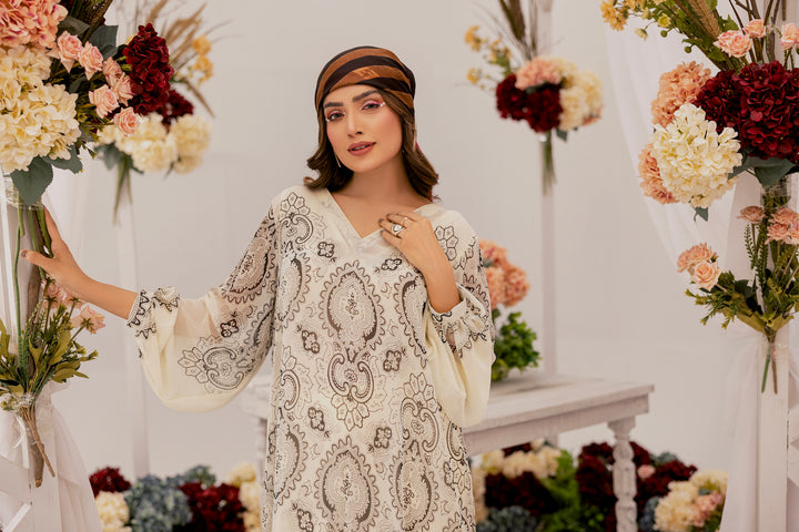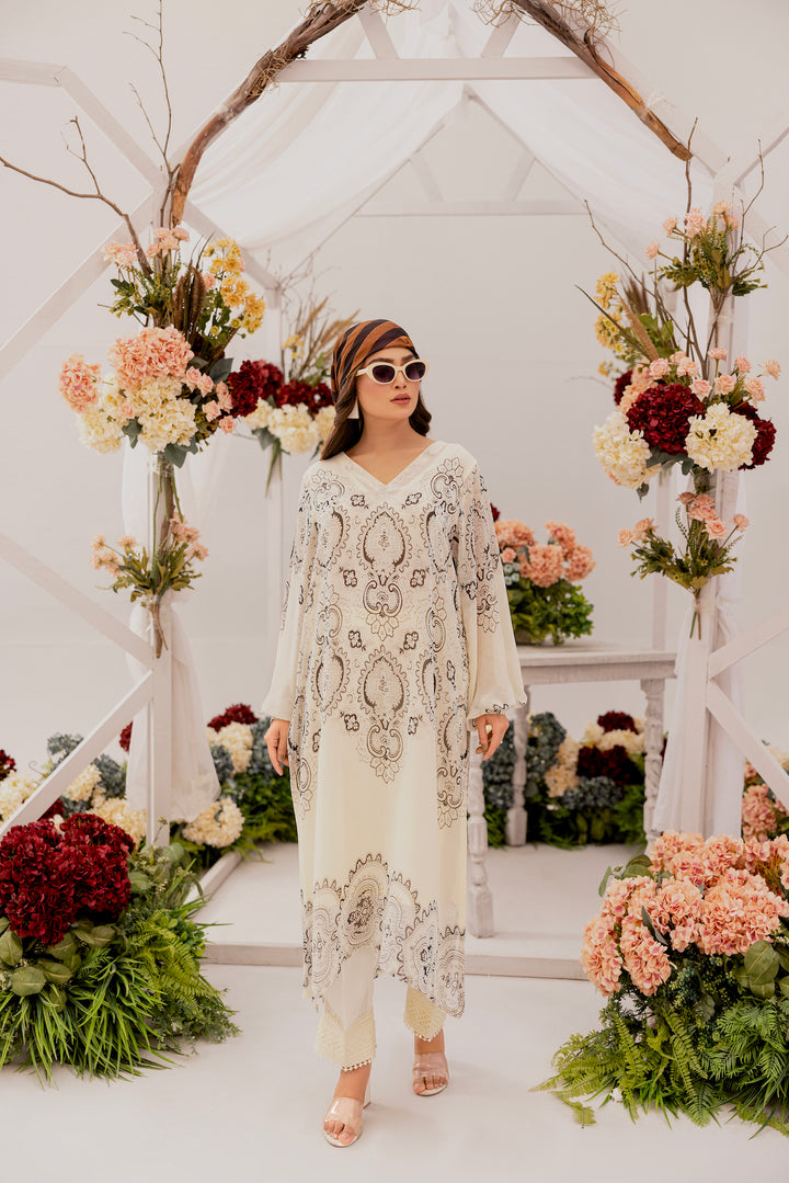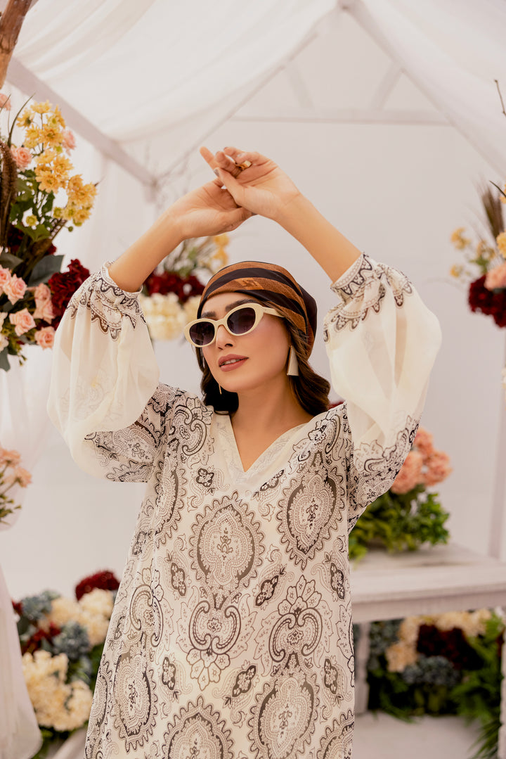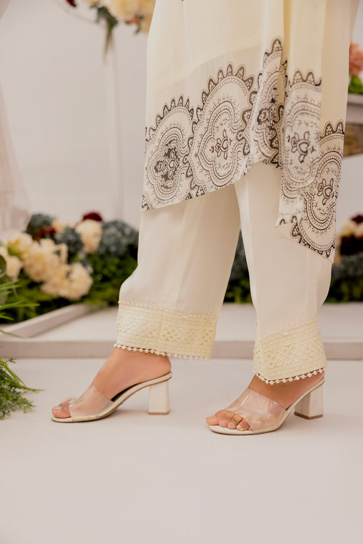 Printed Chiffon shirt with cotton silk slip & straight lawn trouser.